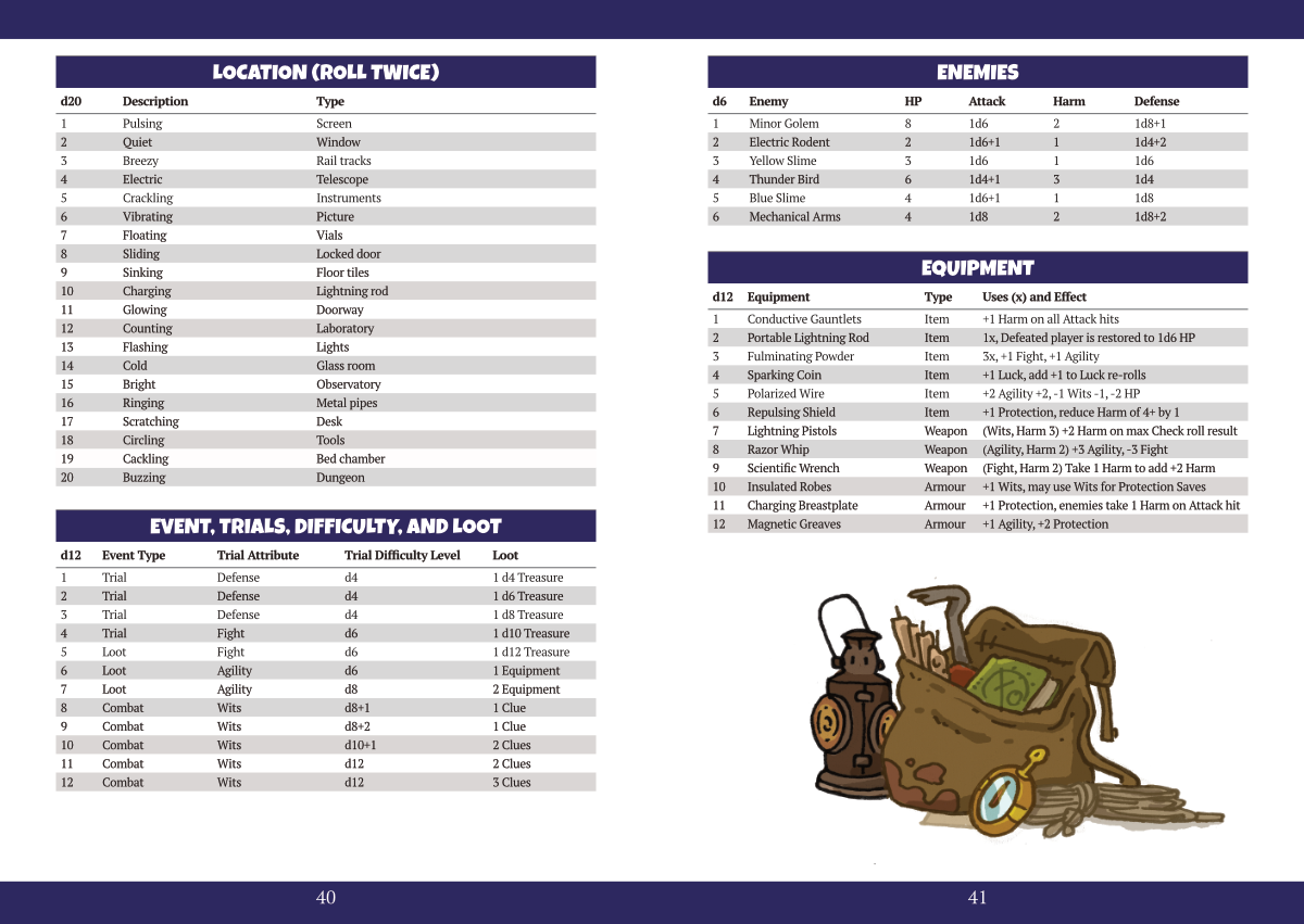 - in the delves there are 2 different table for Items and Weapons/Armour. When the Reward tables refers to "equipment", should we roll a d12 on these tables and get a random iteems/weapon/armor from here? Is that what you intended with Equipment? We got confused by the words Equipment but then there's no a proper Equipment table except for the one at pag.17