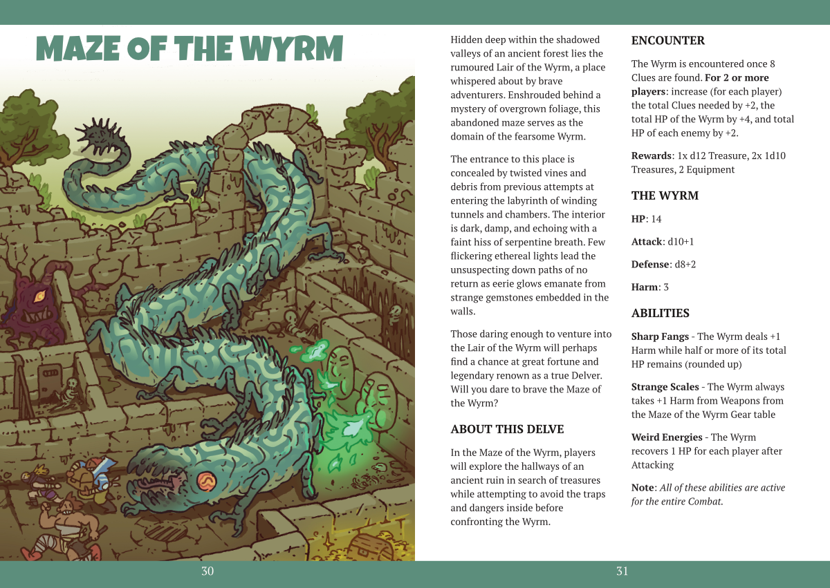 Inside the rulebook you will find 3 revised Delves to get started with. These provide a great jumping-off point for first time players and spark the imagination for custom adventures.